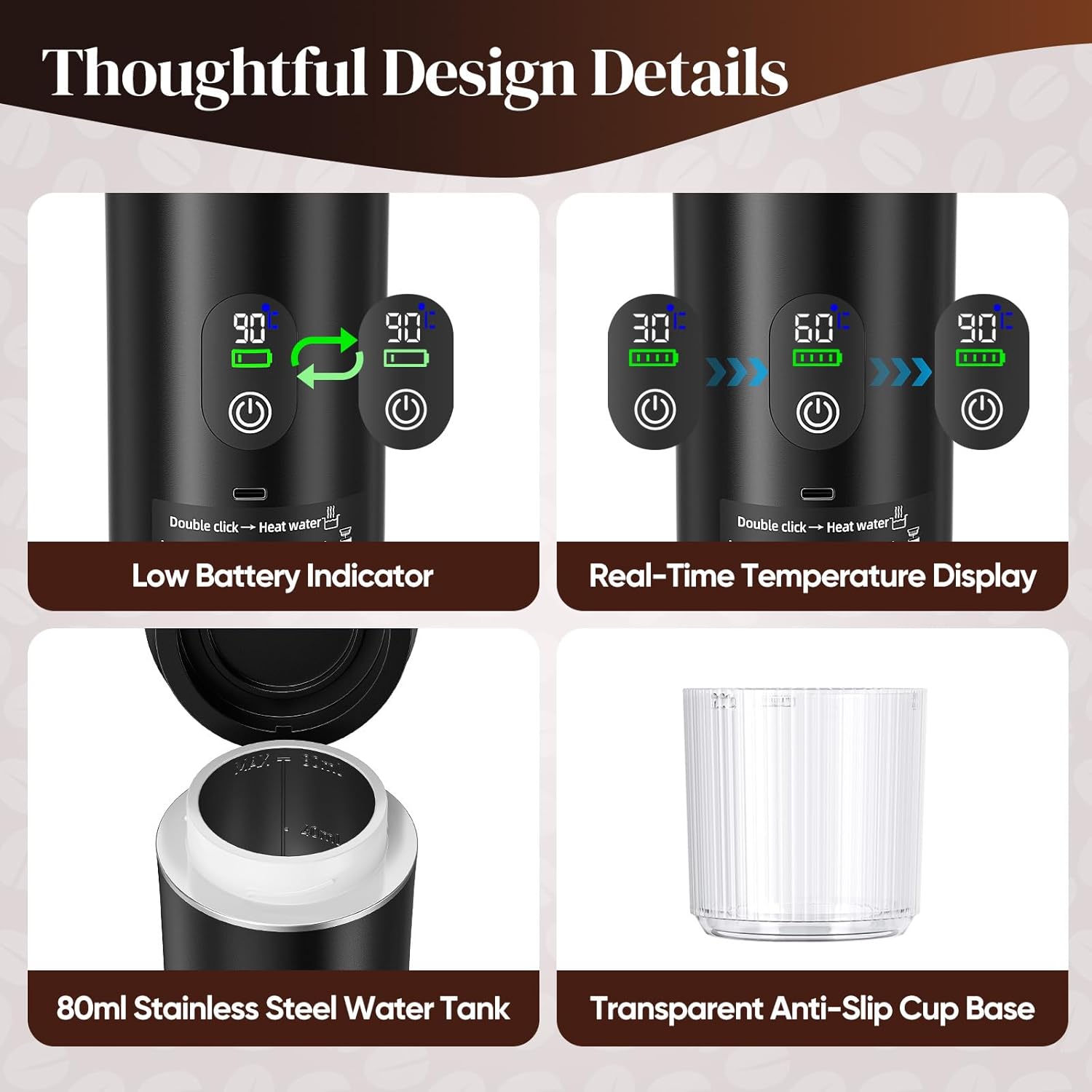 Profitez d'un café d'exception n'importe où. Notre appareil allie performance, praticité et design, offrant une qualité de café inégalée pour tous vos déplacements.